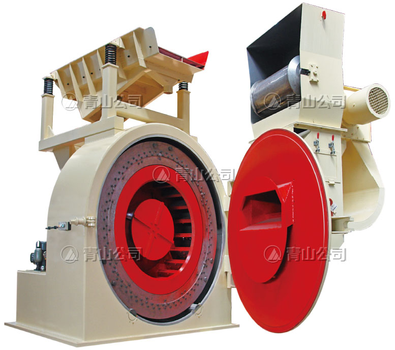 環(huán)式刨片機主要分為進(jìn)料系統(tǒng)和刨片系統(tǒng)兩部分, 前者由振動給料器、磁選滾筒、重物分離器組成,后者由刀環(huán)、葉輪、機座、主軸、驅(qū)動、液壓系統(tǒng)、制動系統(tǒng)等組成。