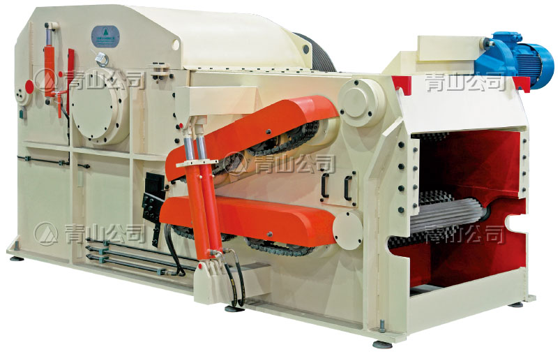The upper feed mechanism is linked by a swing shaft on the machine seat,moving up and down with different dia of feeding material, with the hydraulic system and teeth plate on the surface of the heavy feeding roller, the upper feed roller can press the raw material hardly, feeding evenly to the knife drum , aim to ensure uniform chip size, and the oversize chips will re-chip until passing the screen hole.
